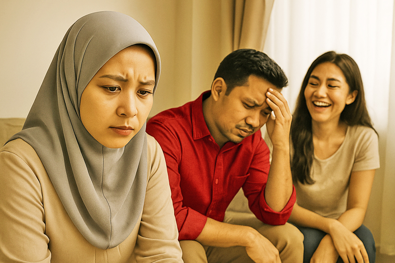 Tapi bila rahsia terbongkar, aku rasa dunia berhenti sekejap. Aku tak tahu nak marah siapa dulu, suami yang khianat atau kawan yang sanggup tikam aku dengan senyuman.