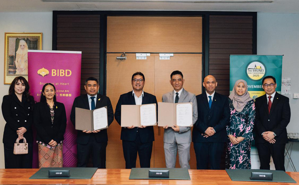BANDAR SERI BEGAWAN, 14 OKT – Bank Islam Brunei Darussalam Berhad (BIBD) telah mengadakan majlis menandatangani Memorandum Persefahaman (MoU), hari ini, bersama Royal Brunei Airlines Sdn. Bhd., dan Arrowtech Sports bagi menjalin kerjasama untuk acara Brunei Half Marathon 2025 merentasi Jambatan Sultan Omar ‘Ali Saifuddien yang dijadualkan berlangsung pada 30 November.