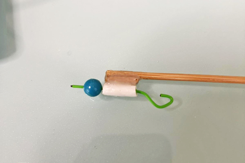Lekatkan manik pada penyangkut tetapi jangan lekatkan manik pada tiub, pastikan ia boleh berpusing bebas. (Gambar 9)