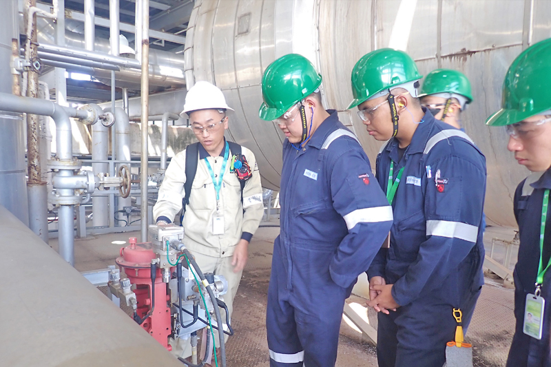 Lawatan membawa pelajar ke kawasan proses penyulingan dan Super Converter Reactor (SPC), di mana mereka diperkenalkan dengan aplikasi pemancar aras, aliran dan tekanan di tapak.