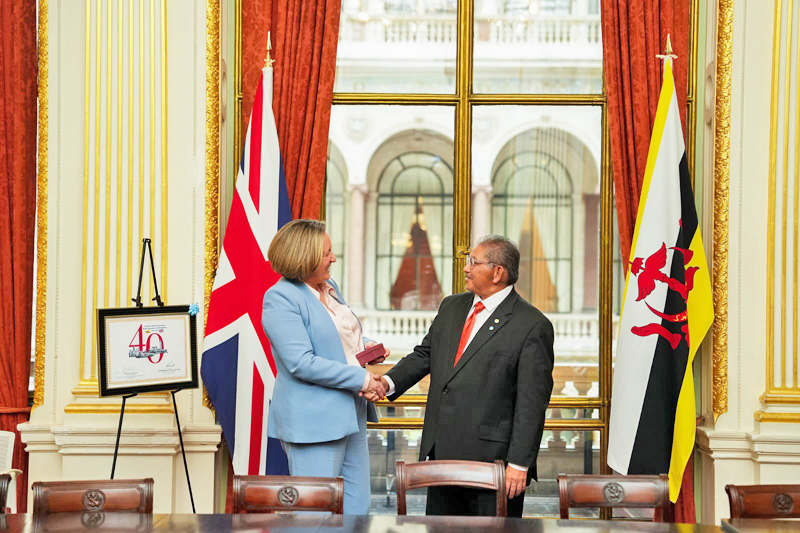 Menurut kenyataan bersama yang dikeluarkan oleh Suruhanjaya Tinggi British di Negara Brunei Darussalam, di sini, menyatakan bahawa para menteri telah memperingati ulang tahun penubuhan hubungan diplomatik di antara UK dan Negara Brunei Darussalam ke-40.