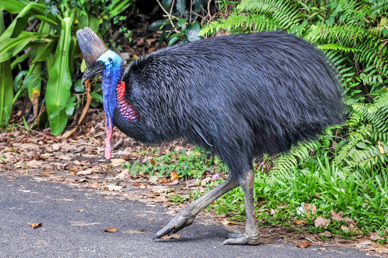 AUSTRALIA – Dengan kaki seakan velociraptor dan leher berwarna biru neon terang, burung kasuari selatan kelihatan amat menggerunkan di hutan hujan timur laut Australia.