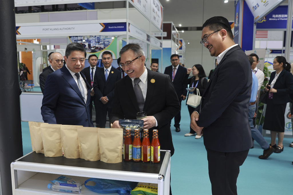 Menteri di Jabatan Perdana Menteri dan Menteri Kewangan dan Ekonomi Kedua, Yang Berhormat Dato Seri Setia Dr Awang Haji Mohd Amin Liew bin Abdullah bersama-sama Menteri Pembangunan, Yang Berhormat Dato Seri Setia Haji Muhd Juanda bin Haji Abdul Rashid melawat ke petak-petak pameran Brunei berikutan pelancaran CAEXPO. Naib Pengerusi Committee of the Chinese People’s Political Consultative Conference for the Guangxi Zhuang Autonomous Region, Wang Naixue juga mengambil bahagian dalam lawatan berkenaan.