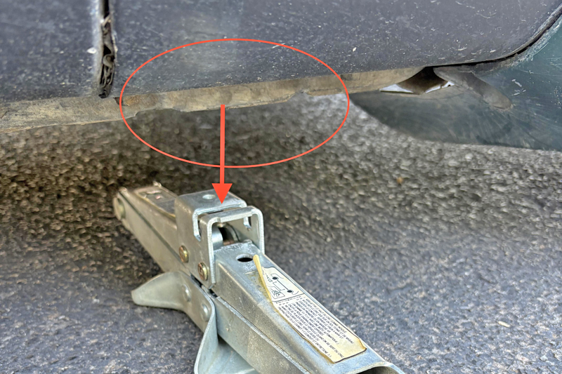 Kenal pasti titik angkat yang selamat pada kenderaan awda. Biasanya ia ditandai dengan dua potongan separuh bulan di sepanjang rangka bawah pintu. Rujuk manual pemilik kenderaan untuk lokasi tepat.