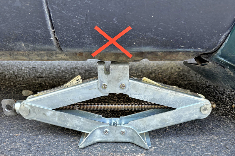 Pastikan jek berada dalam keadaan paling rendah supaya boleh dimasukkan di bawah kenderaan.
