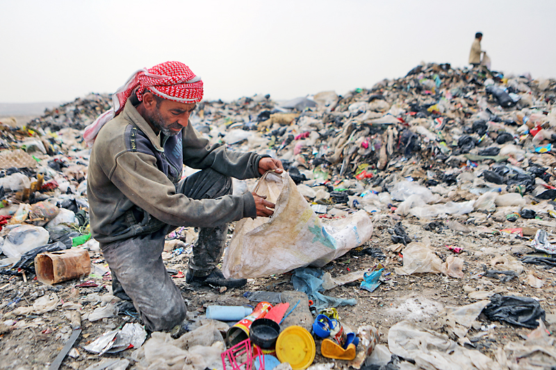 Walaupun terpaksa mengharungi bau busuk, serangga dan risiko penyakit, Behlal yang berusia 39 tahun menggali timbunan sampah dengan menggunakan tangan dan sabitnya.