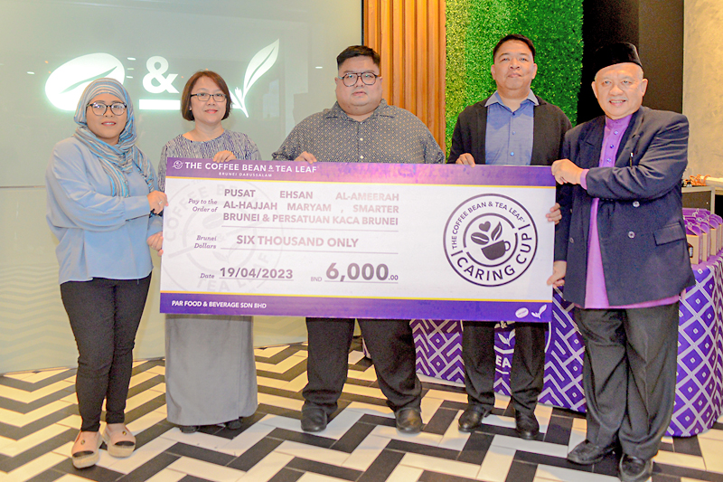 BANDAR SERI BEGAWAN, 19 APRIL – The Coffee Bean & Tea Leaf (CBTL) Brunei menghulurkan sumbangan derma berupa cek dan hadiah ke Persatuan KACA, SMARTER Brunei dan Pusat Ehsan Al-Ameerah Al-Hajjah Maryam (Pusat Ehsan) bersempena dengan bulan Ramadan yang berlangsung di CBTL Cawangan One City, hari ini.
