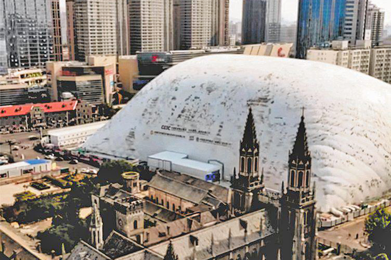 Apa yang awda perlukan ialah belon kembung gergasi! Yang pertama seumpamanya di China dan dilaporkan terbesar di dunia, kubah kembung di Jinan itu mempunyai ketinggian 50 meter dan meliputi kawasan seluas 20,000 meter persegi.