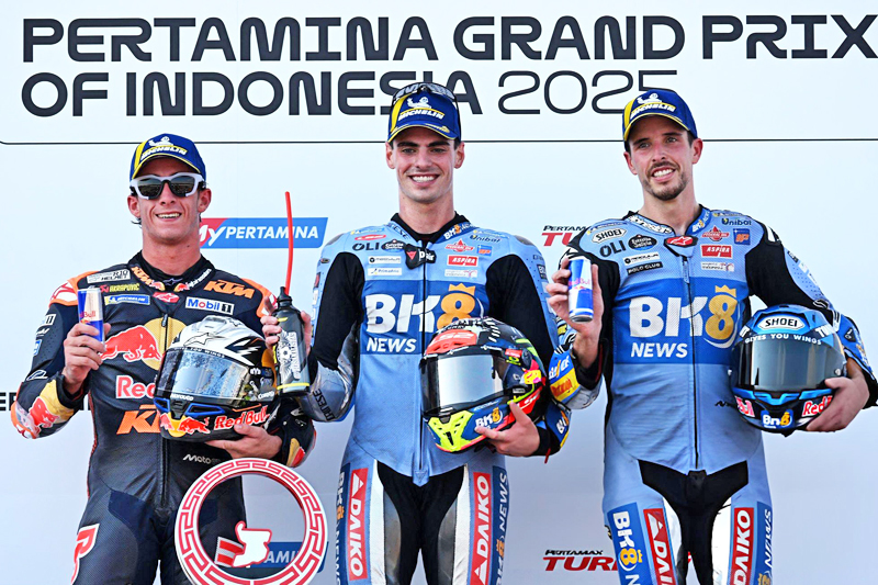SEPANG, 24 OKT – Cuaca hujan tidak menghalang pelumba BK8 Gresini Racing MotoGP, Fermin Aldeguer untuk mencatatkan masa terpantas pada sesi Latihan Bebas 1 (FP1) perlumbaan Grand Prix Motosikal Malaysia (MotoGP) 2025 di Litar Antarabangsa Sepang, hari ini.