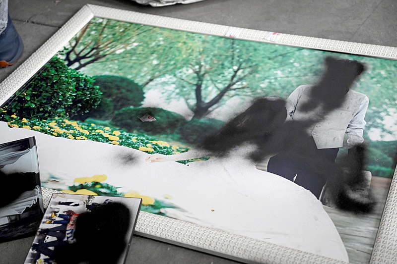 Foto perkahwinan adalah perniagaan besar di China, di mana taman-taman, kuil dan tapak bersejarah sering dipenuhi dengan pasangan pengantin baru mengenakan gaya ketika gambar, mengabadikan ikatan yang sepatutnya tidak boleh diputuskan.