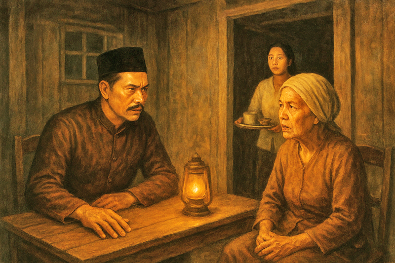 “Begini Mak Kunah…”, penghulu berhenti seketika bila melihat isterinya tiba-tiba masuk ke bilik tamu.