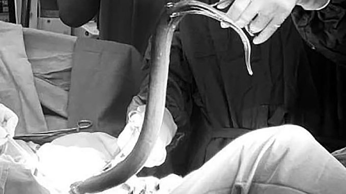 Dengan kesakitan lelaki itu yang semakin meningkat, doktor tidak mempunyai pilihan selain melakukan pembedahan pada perut lelaki tersebut. Mereka terkejut apabila menemui seekor belut hidup kira-kira 65 cm panjang dan 10 cm lilitan.