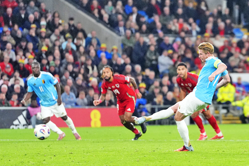 CARDIFF, 14 OKT – Kevin De Bruyne berjaya menjaringkan dua gol penalti ketika Belgium memperkukuh peluang mereka untuk layak ke Piala Dunia dengan kemenangan penting 4-2 ke atas Wales kelmarin.