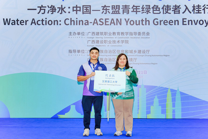 BANDAR SERI BEGAWAN, 27 MEI – Dua orang pelajar Universiti Teknologi Brunei (UTB) telah mencatatkan pencapaian membanggakan apabila mendapat tempat ketiga dalam Pertandingan Kemahiran Vokasional Guangxi-ASEAN 2024 bagi Ujian Kualiti Air untuk Pelajar Universiti dan Kolej Vokasional yang sangat kompetitif, baru-baru ini.