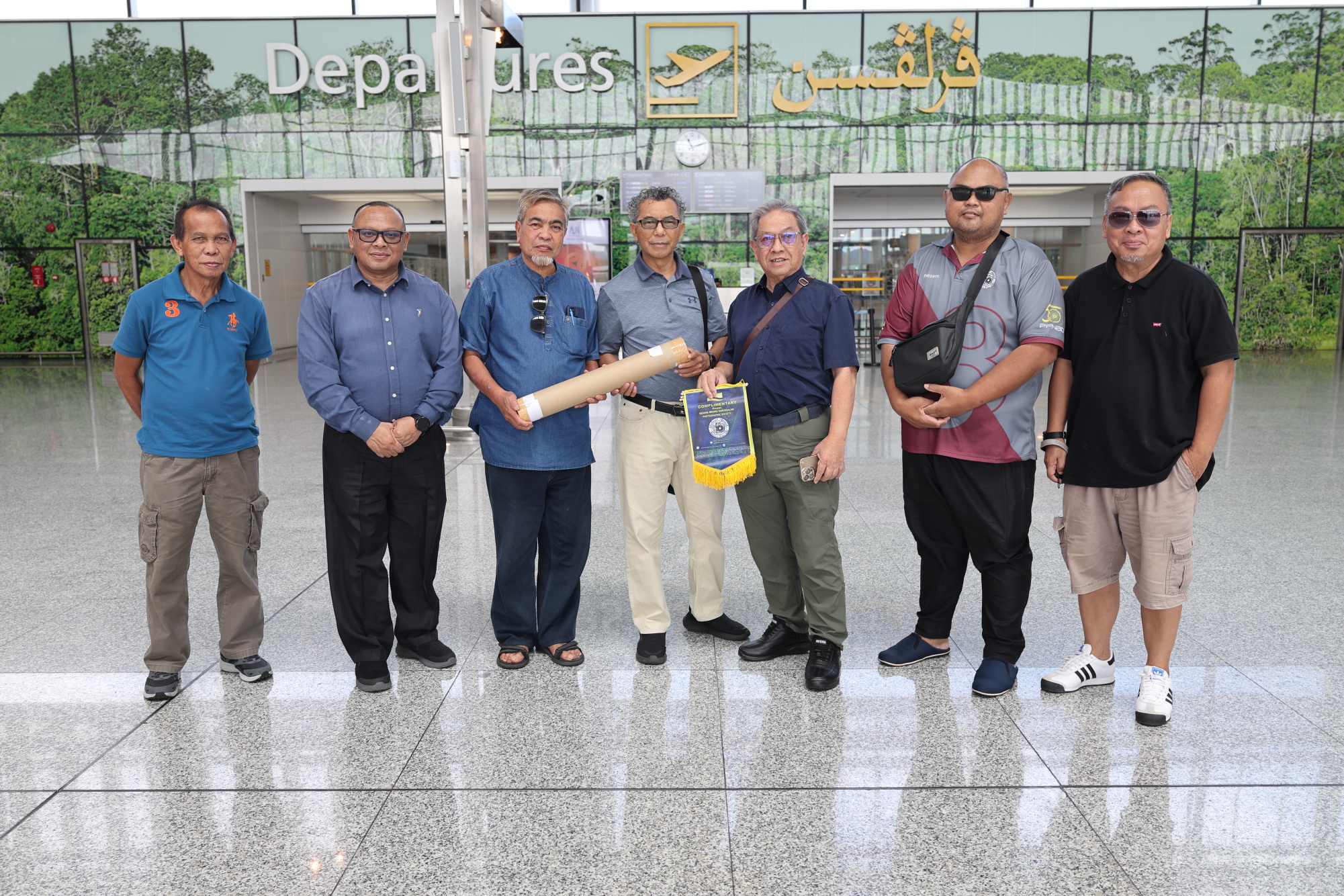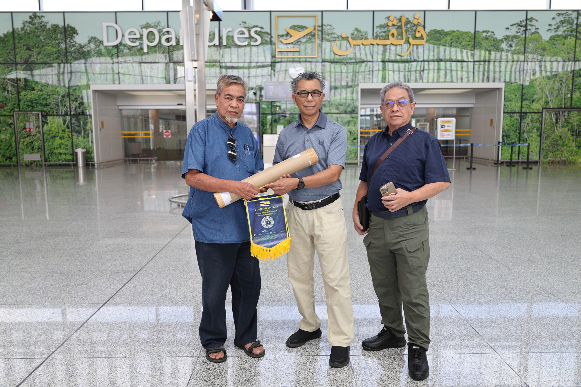 Hadir bagi mengucapkan selamat belayar dan menyerahkan Bendera (‘Pennant’) Pertubuhan Fotografi Negara Brunei Darussalam di ruang berlepas Lapangan Terbang Antarabangsa Brunei, Yang Di-Pertua Pertubuhan Fotografi Negara Brunei Darussalam, Pengiran Haji Sulaiman bin Pengiran Md Salleh yang telah Penasihat Perubuhan Fotografi Negara Brunei Darussalam, Haji Md Yusof.