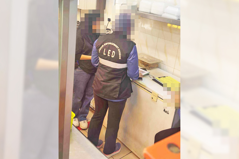 Menurut kenyataan yang dikeluarkan oleh Jabatan Buruh, pemeriksaan ke atas kegiatan kedai makan telah mendapati kesalahan-kesalahan di bawah Akta Pekerjaan, Penggal 278 yang dipercayai dilakukan oleh majikan iaitu Bab 39(2) gagal membayar kerja lebih masa, Bab 63 gagal memberikan cuti rehat, Bab 64 bekerja pada hari rehat, Bab 65 bekerja melebihi jam bekerja yang telah ditetapkan, Bab 70 gagal memberikan cuti pada hari kelepasan awam yang diwartakan dan Bab 71 gagal memberikan cuti tahunan berbayar kepada pekerja-pekerja.