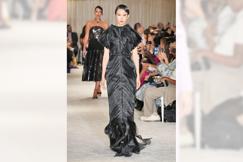 NEW YORK – Bersembunyi di sebalik tirai berwarna krim, pereka Christian Siriano mengubah lorong sukan gedung serbaneka Herald Square Macy menjadi alam sinematik ketika dia membawa hadirin kepada pertunjukan Minggu Fesyen New York daripada gaun hitam-putih kepada penampilan penuh warna.