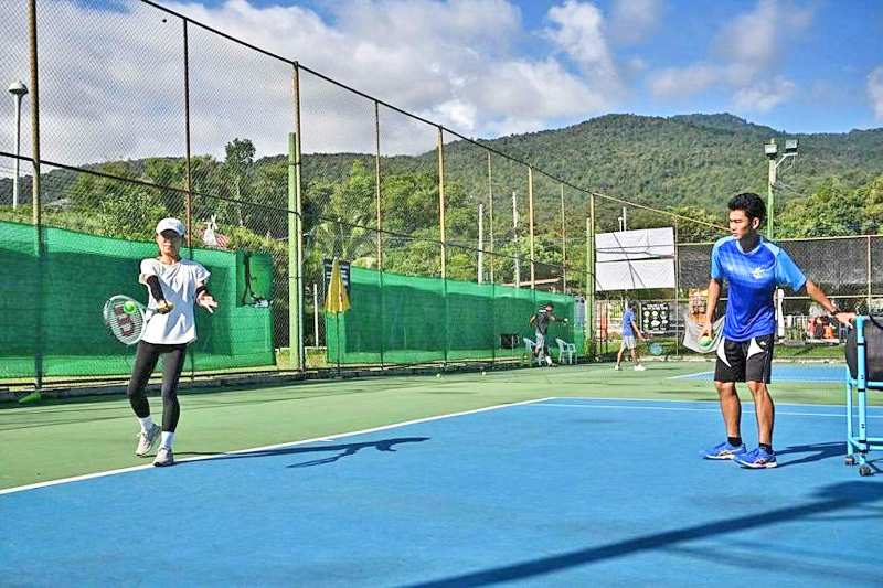 Kembali ke gelanggang tenis di Chiang Mai, suami Chen Lin memberikan galakan kepadanya.