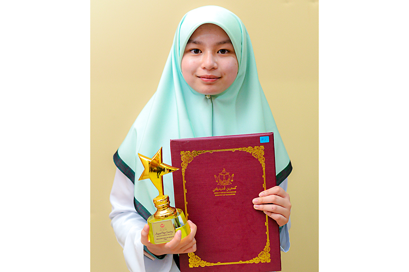 Dengan mendapat keputusan 9 O dalam Peperiksaan BCGCE ‘O’ Level pada tahun lepas, beliau kini menuntut di Pusat Tingkatan Enam, Belait dengan rendah hati mengongsikan bahawa kejayaan yang digenggam pada masa kini sememangnya terinspirasi daripada ayah tercinta yang baginya seorang yang sentiasa berusaha bersungguh-sungguh dalam membuat sesuatu perkara.