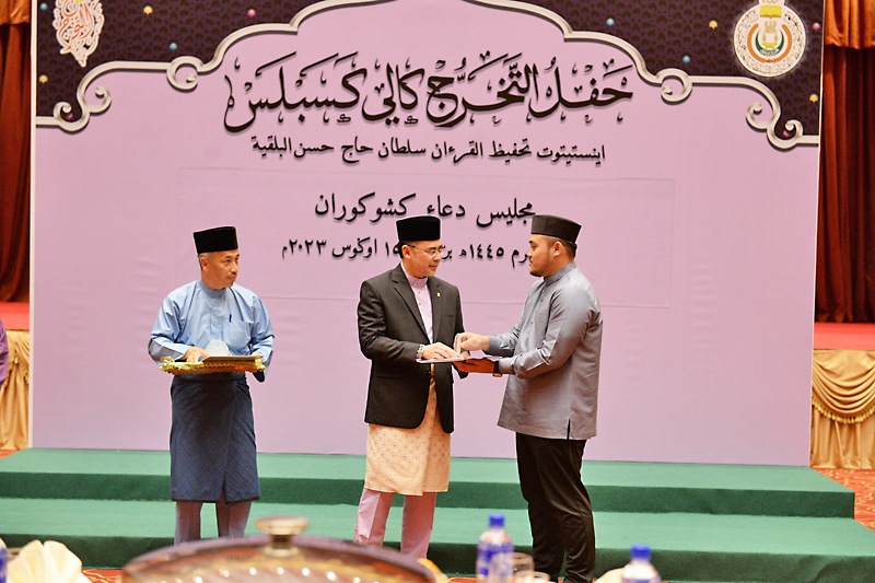BANDAR SERI BEGAWAN, 15 OGOS – Sebagai tanda kesyukuran ke hadrat Allah SWT bagi meraikan kejayaan para graduan yang telah berjaya menamatkan pengajian bagi sesi pengajian 2020-2023, Institut Tahfiz Al-Quran Sultan Haji Hassanal Bolkiah (ITQSHHB) telah mengadakan majlis Doa Kesyukuran sempena Haflut Takharruj ke-11, hari ini.