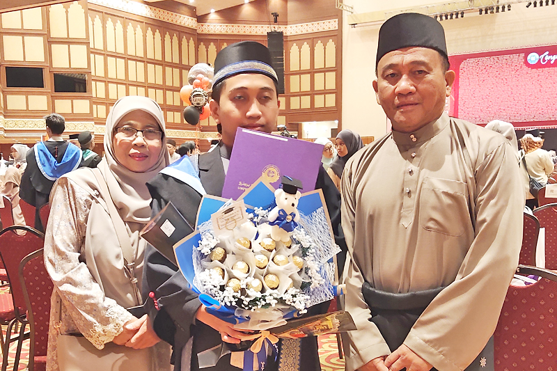 Begitulah yang dikongsi oleh sepasang suami isteri, Awang Mohammad Yussof bin Taai dan Dayang Nooraini binti Abdul Hamid setelah menyaksikan anak sulung mereka, Awang Muhammad Naqib Nasrullah bin Mohammad Yussof, menerima Ijazah Sarjana Muda Sains (Kepujian) dalam Pengkomputeran dengan Analitis Data, semasa ditemui Media Permata ketika berlangsungnya Majlis Konvokesyen Universiti Teknologi Brunei (UTB) di Dewan Plenari, Pusat Persidangan Antarabangsa (ICC), Berakas.