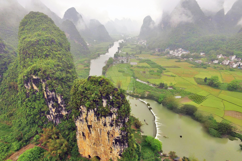 Makan tengah hari dihidangkan di atas kapal, diiringi alunan lembut guzheng, alat muzik bertali tradisional China. Setibanya di daerah Yangshuo, kami meneroka West Street, kawasan pejalan kaki yang meriah berlatarbelakangkan puncak-puncak karst serta dipenuhi deretan gerai makanan jalanan dan kedai cenderamata, iaitu satu gabungan mempesona antara tradisi lama dan suasana moden.