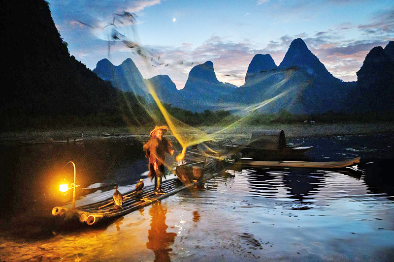 Keesokan paginya, kami memulakan pelayaran sejauh 63 kilometer menyusuri Sungai Li, satu perjalanan yang sering digambarkan sebagai antara yang terindah di dunia. Sungai itu terbentang luas di depan kami bak reben sutera hijau, mengalir berliku di celah pergunungan karst yang menjulang megah ke langit.
