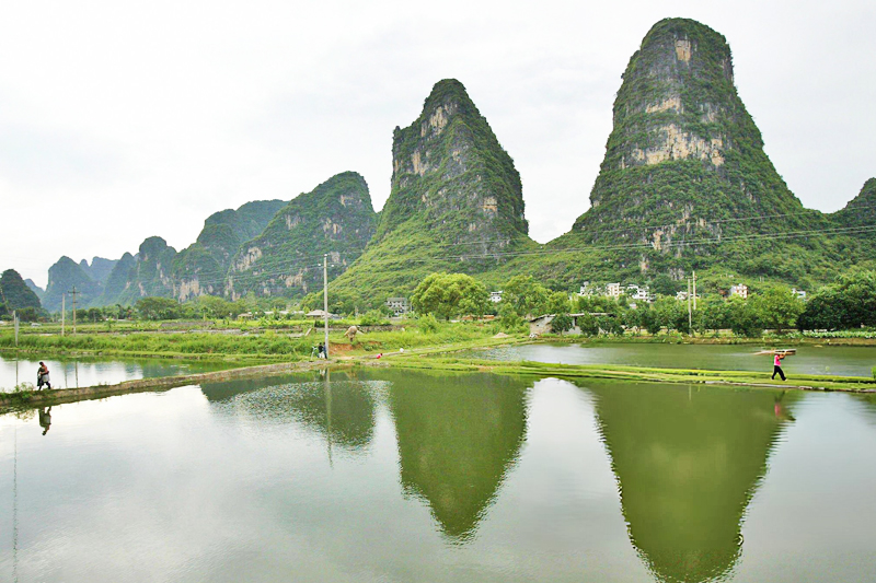 Keesokan harinya, selepas melawat beberapa industri tempatan kami menemukan ketenangan di Taman Longtan, sebuah taman hijau yang mendamaikan dengan tasik berair tenang bak cermin memantulkan pergunungan karst di sekelilingnya.