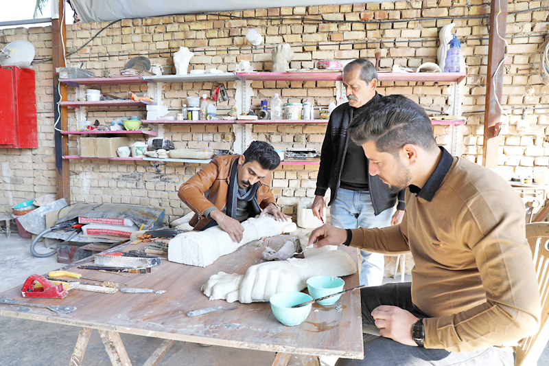 Bekerja di studionya di kawasan luar bandar yang tenang di pinggir utara ibu kota Iraq, Baghdad, Hadi Hamza, seorang pesara profesor arca sibuk menyiapkan salah satu karya seninya dengan dua orang perantis.