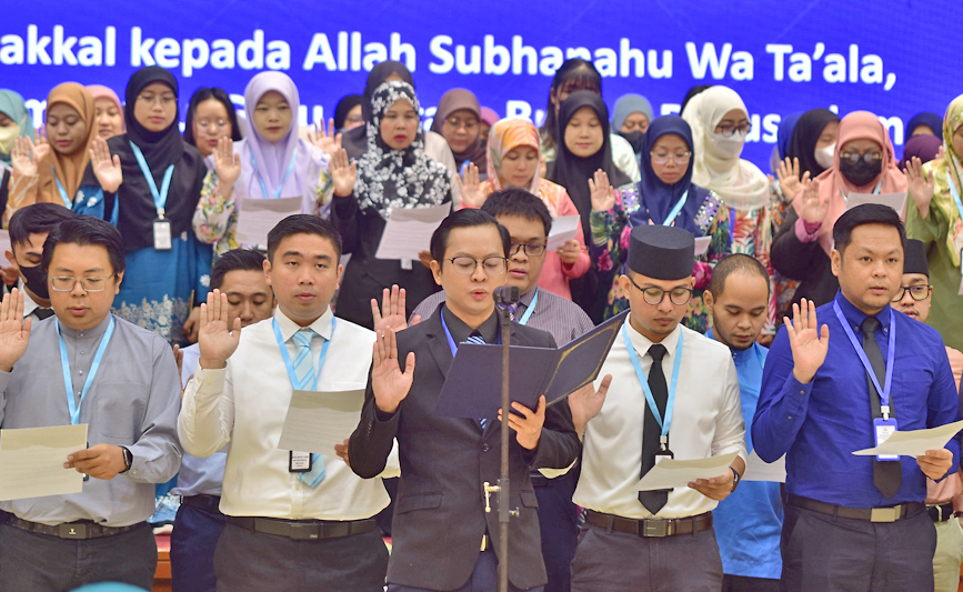 Majlis seterusnya menyaksikan lafaz Ikrar Guru beramai-ramai yang diketuai oleh salah seorang peserta program induksi, Awang Akmal Fauzan bin Abu Bakar.