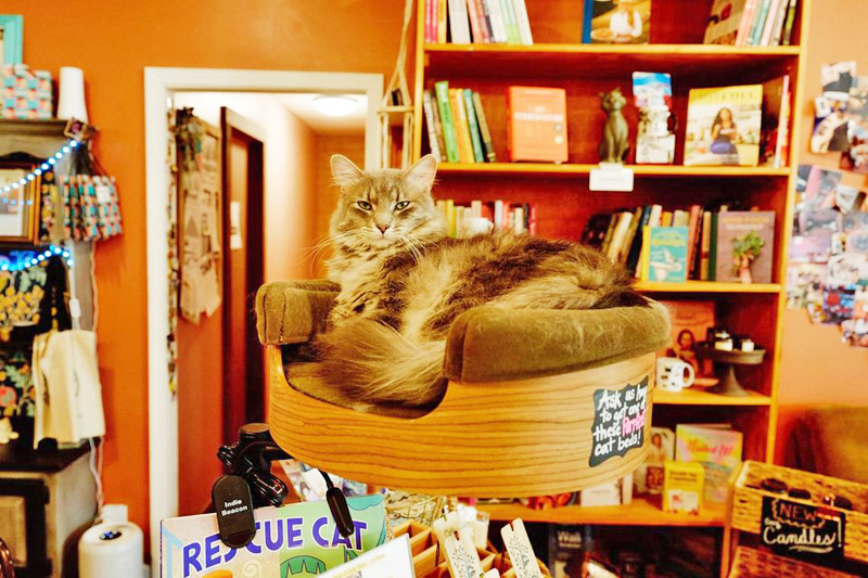 Terokai lagi dalam ruang-ruang selesa yang dipenuhi buku bergambar dan awda akan mula mengesan tema kedai tersebut. Kucing malas yang dikenali sebagai Booker T. Jones itu ternyata merupakan salah satu daripada banyak haiwan di premis berkenaan.