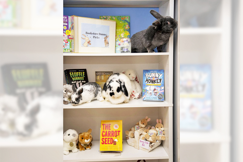 “Kami tidak mempunyai buku di rak bawah,” kata Laura Schaefer, yang membuka Scattered Books pada 2017. “Arnab memberikan suasana komedi yang melucukan. Ia tidak mengeluarkan sebarang bunyi, tetapi boleh berkomunikasi.”