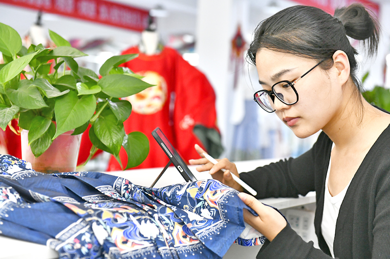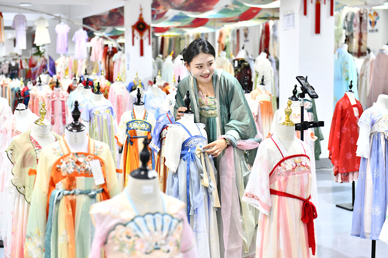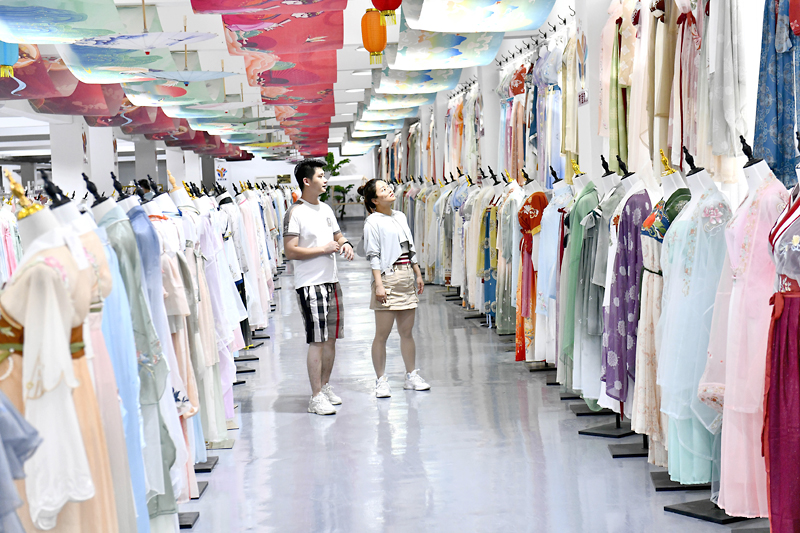 Pada penghujung bulan lepas, di taman perindustrian e-dagang di bandar itu, seorang wanita muda menggunakan platform penstriman langsung untuk mempromosikan pakaian hanfu yang mengandungi set yunjian, sejenis hiasan pakaian popular yang dibuat mengikut gaya Dinasti Ming ( 1368-1644).