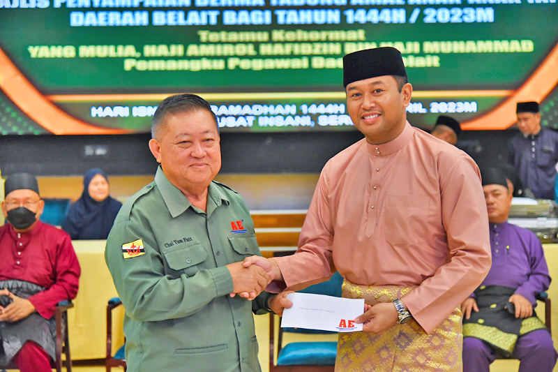 Di Daerah Belait, seramai 584 orang dari seluruh daerah berkenaan berkumpul di Balai Raya Pusat Insani, Seria untuk menerima sumbangan daripada Tabung Anak Yatim Daerah Belait bagi 2023, hari ini.