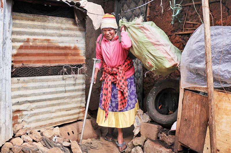 NAIROBI – Menggunakan tongkat untuk menanggung berat badannya, Molly Aluoch yang berusia 85 tahun melangkah keluar dari biliknya yang berdinding lumpur di pinggir kawasan setinggan Nairobi, memikul guni plastik terpakai untuk ditukar dengan pancuran mandian atau tandas yang selamat.