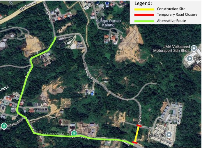 Menurut kenyataan Jabatan Kerja Raya (JKR), Kementerian Pembangunan, penutupan sementara jalan itu adalah bagi membolehkan kerja-kerja menaikkan paras jalan dan pembinaan longkang konkrit untuk dilaksanakan.