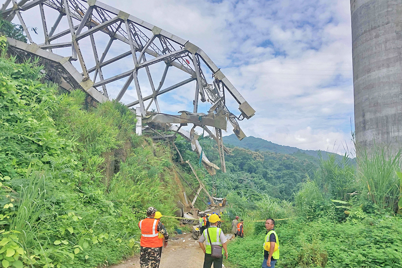 Rakaman video yang disiarkan oleh Ketua Menteri, Mizoram Zoramthanga menunjukkan bingkai logam yang telah menumbangkan tiang yang menjulang tinggi ke dalam lembah berhutan di bawahnya.