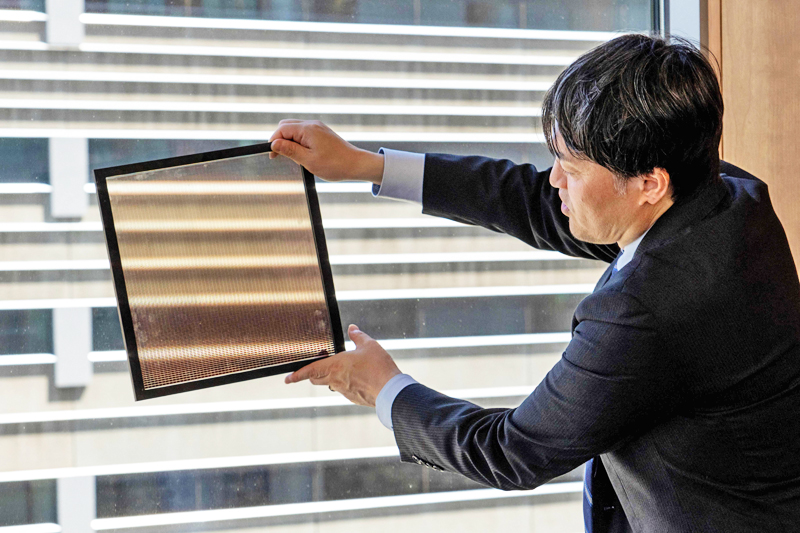 “Bayangkan jika semua tingkap ini mempunyai sel solar di dalamnya,” kata Yukihiro Kaneko, pengurus besar jabatan pembangunan PV perovskit Panasonic, sambil menunjuk ke arah bangunan tinggi berhampiran pejabat Tokyo syarikat itu.