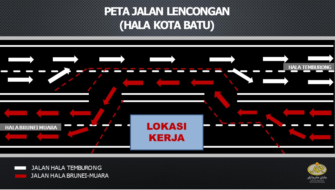 BANDAR SERI BEGAWAN, 10 NOV – Jabatan Kerja Raya (JKR) memaklumkan penutupan sementara separuh jalan di Jalan Tutong iaitu menghala Sengkurong akan diadakan hari ini sehingga kerja-kerja selesai bermula pukul 7 malam hingga 5:30 pagi.