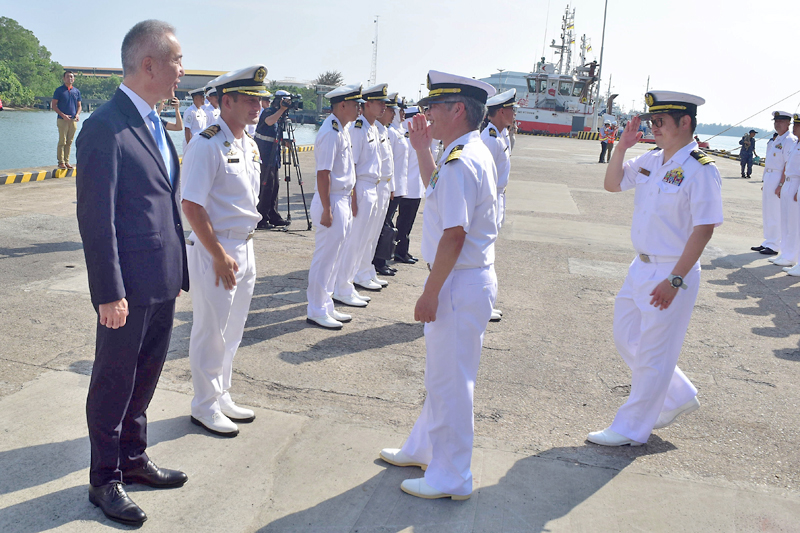 Ketibaan kapal berkenaan di Pelabuhan Muara dialu-alukan oleh Duta Besar Istimewa dan Mutlak Jepun ke Negara Brunei Darussalam, Tuan Yang Terutama Maeda Toru dan pegawai-pegawai dari Tentera Laut Diraja Brunei (TLDB) yang diketuai oleh Pegawai Pemerintah KDB DARRUTAQWA, Komander Malek Fadillah bin PDJLD Dato Seri Pahlawan Haji Kifli, serta pegawai, kakitangan dan keluarga Kedutaan Jepun di Negara Brunei Darussalam.