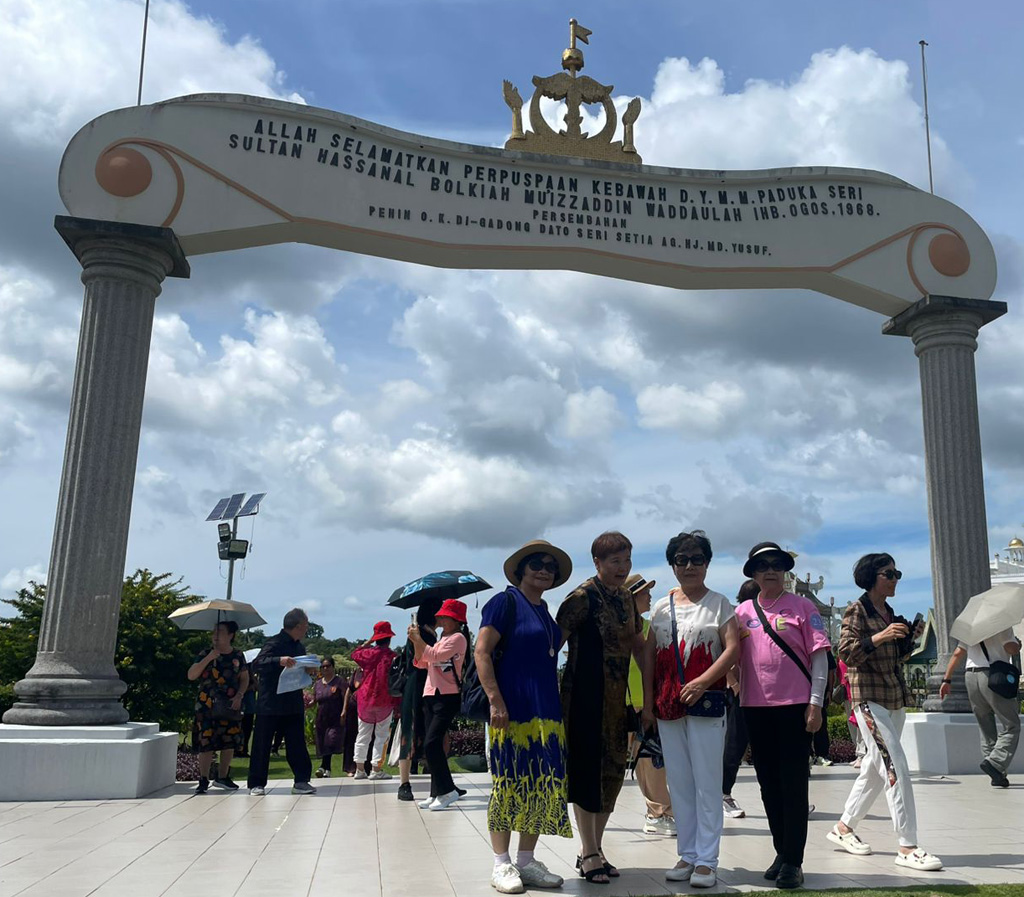Lawatan mereka juga meliputi kunjungan ke Masjid Omar ‘Ali Saifuddien, yang merupakan salah satu mercu tanda Islam yang paling menakjubkan di rantau ini dan mengambil kesempatan bergambar di luar Istana Nurul Iman.