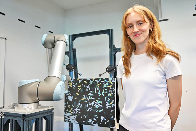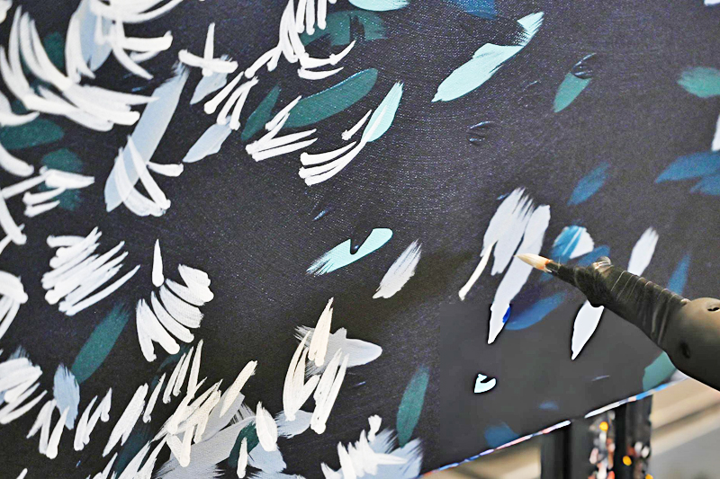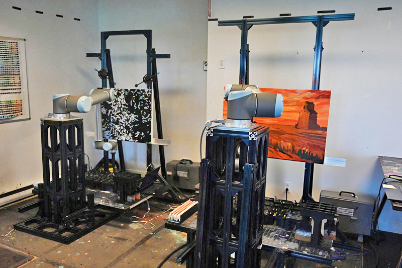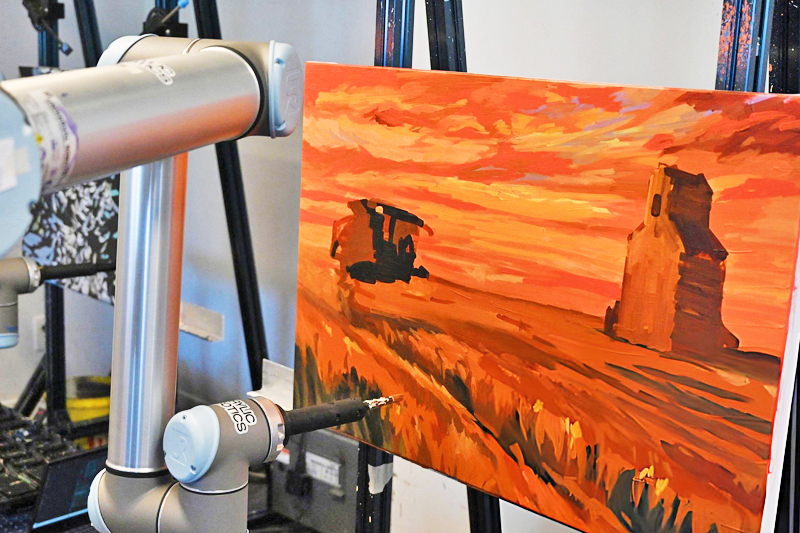 “Saya terkejut,” katanya, sambil melihat peranti itu memegang berus, mencelupkannya ke dalam bekas cat dan meniru beberapa hasil kerjanya dengan lorekan berus.