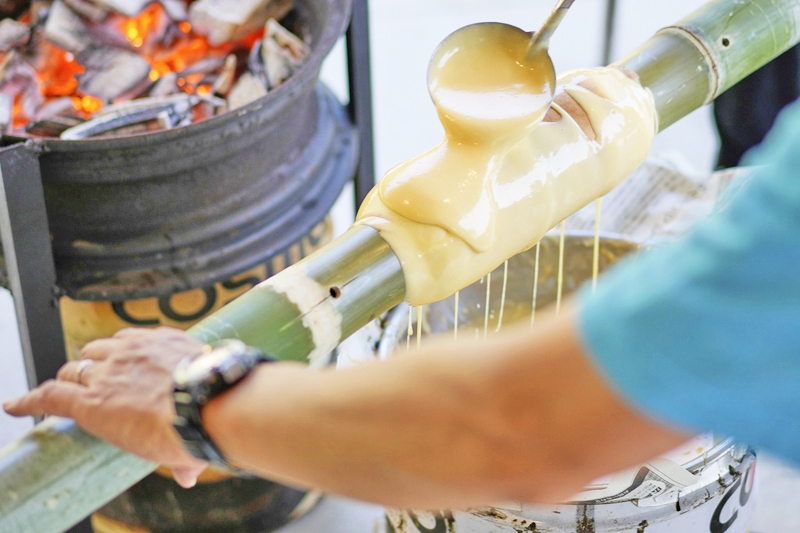 Di pusat luar bangunan yang dibina di atas tapak kem tahanan perang, pembuat roti amatur menuangkan adunan pada batang buluh dan memanggang campuran di atas api arang. Apabila permukaannya bertukar menjadi coklat muda, lapisan baharu dituang, menghasilkan cecincin coklat apabila kek menjadi lebih pekat dan bau harum semerbak meresap melalui kawasan perkelahan.