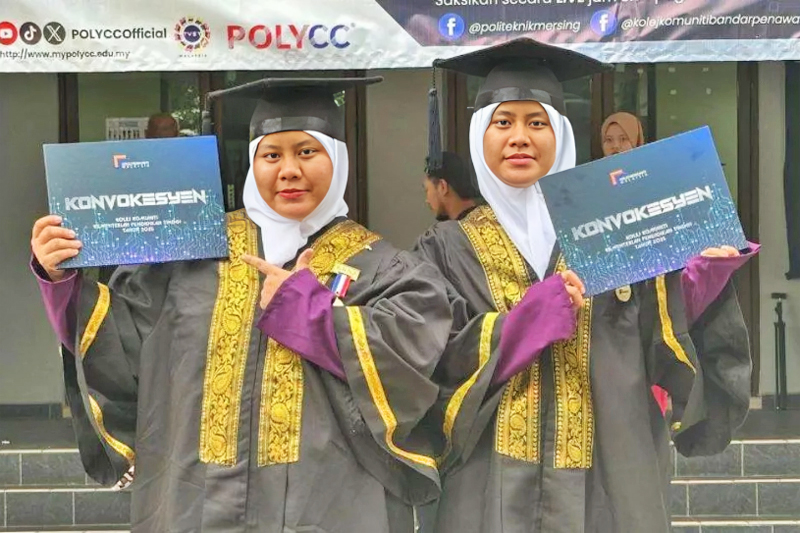 MERSING – Bermula tanpa sebarang asas dalam bidang teknologi maklumat, pasangan kembar Syahirah Afifah dan Syahirah Afiqah Rohaizat, graduan Kolej Komuniti Bandar Penawar, Kota Tinggi, membuktikan kesungguhan mampu mengubah ‘zero’ menjadi ‘hero’.