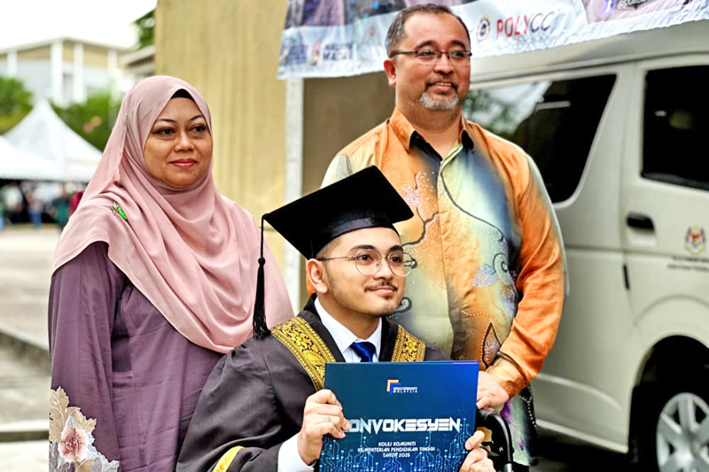 “Ibu dan ayah selalu mengingatkan saya bahawa kekurangan bukan penghalang, sebaliknya cabaran untuk terus melangkah,” kata-nya yang turut menerima dorongan berterusan daripada rakan-rakan serta pensyarah.