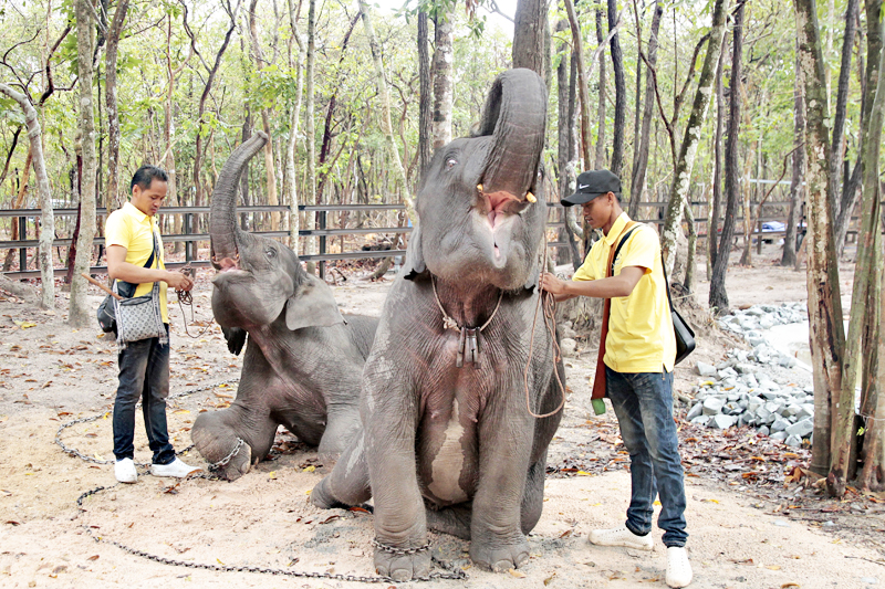 Linkham Douangsavanh, Menteri Pertanian dan Perhutanan Laos, menghantar gajah jantan dan betina itu kepada Menteri Pertanian, Perhutanan dan Perikanan Kemboja, Dith Tina, pada majlis yang diadakan di taman zoologi, hutan simpan dan botani Phnom Tamao di selatan Daerah Bati di wilayah Takeo.