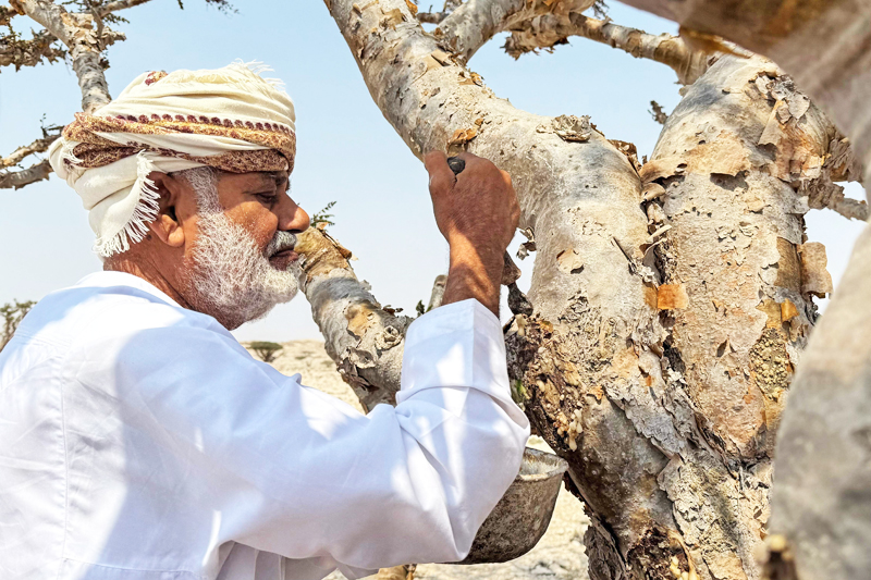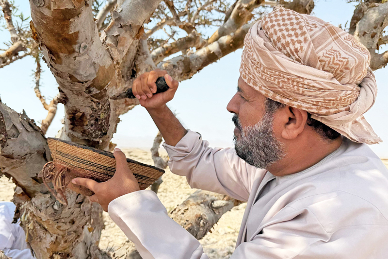 “Kami menoreh pokok pada bahagian tertentu, kecil dan kira-kira lima kali sahaja, untuk melindungi pokok,” kata Musallam bin Saeed Jaddad, yang bekerja di kawasan simpanan itu.