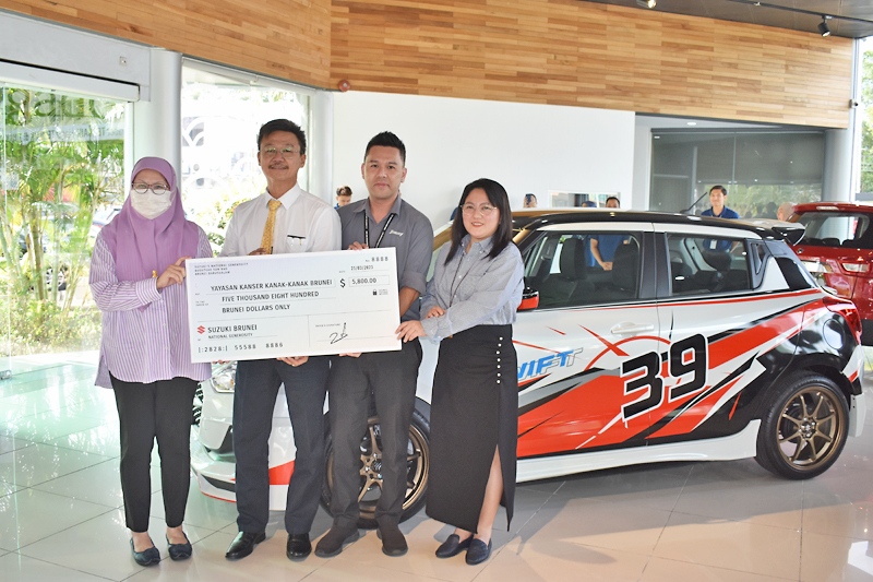 Majlis penyampaian hadiah berlangsung di bilik pameran Suzuki, Gadong, baru-baru ini, yang turut diselajurkan dengan penyerahan dana kepada Yayasan Kanser Kanak-kanak (YASKA) Brunei yang merupakan inisiatif oleh pihak pengurusan Suzuki Brunei dan kakitangan dari Jabatan Jualan dan Selepas Jualan, pengurusan dan kakitangan LUB Enterprise, serta pelanggan baharu dan sedia ada yang membawa kepada usaha dan komitmen luar biasa dalam mengumpul dana untuk kanak-kanak YASKA.