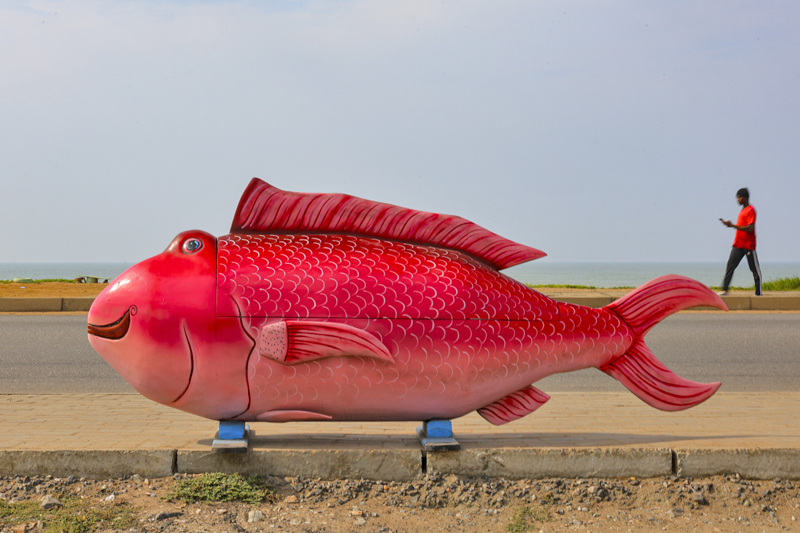ACCRA, GHANA – Seekor ikan merah jambu gergasi, burung merak berwarna-warni, kapal terbang yang dicat dengan bendera negara. Kesemuanya hanyalah sebahagian daripada keranda fantasi Ghana, yang dikenali sebagai Abebuo, yang diterjemahkan kepada ‘peribahasa.’