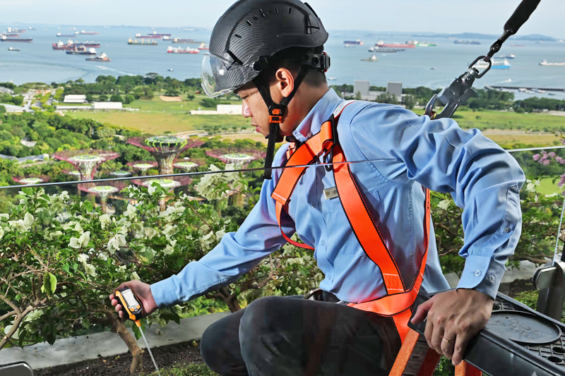 Saya berumur 34 tahun, dan saya memastikan lebih daripada 950 pokok dan pokok palma, termasuk 90 pokok yang ditanam di Sands SkyPark, berada dalam keadaan terbaik. Saya bertanggungjawab ke atas kawasan landskap di hotel, dan mencatat sekurang-kurangnya 12,000 langkah setiap hari.